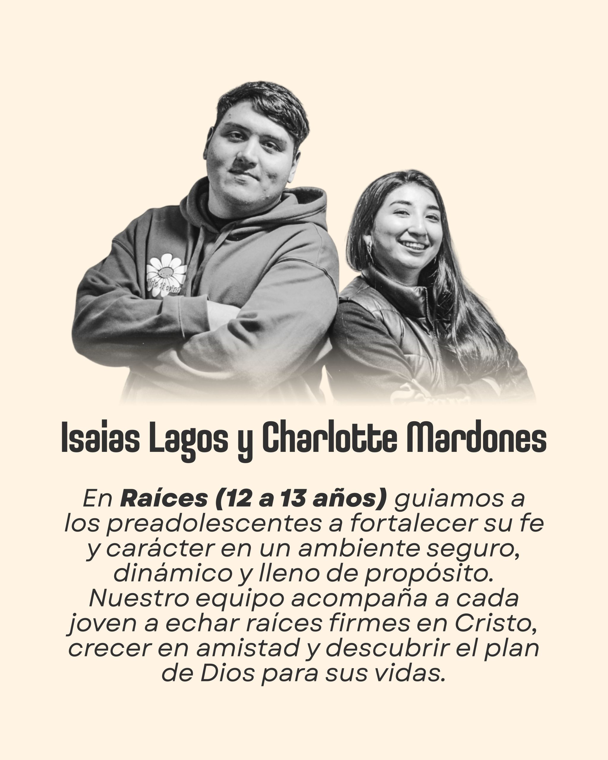 Somos un equipo dedicado a guiar y discipular a las nuevas generaciones, mostrando el amor de Cristo y enseñando Su Palabra con pasión. Servimos para acompañar a cada joven en su caminar con Dios, ayudándolos a crecer en fe, carácter y propósito. Instagram